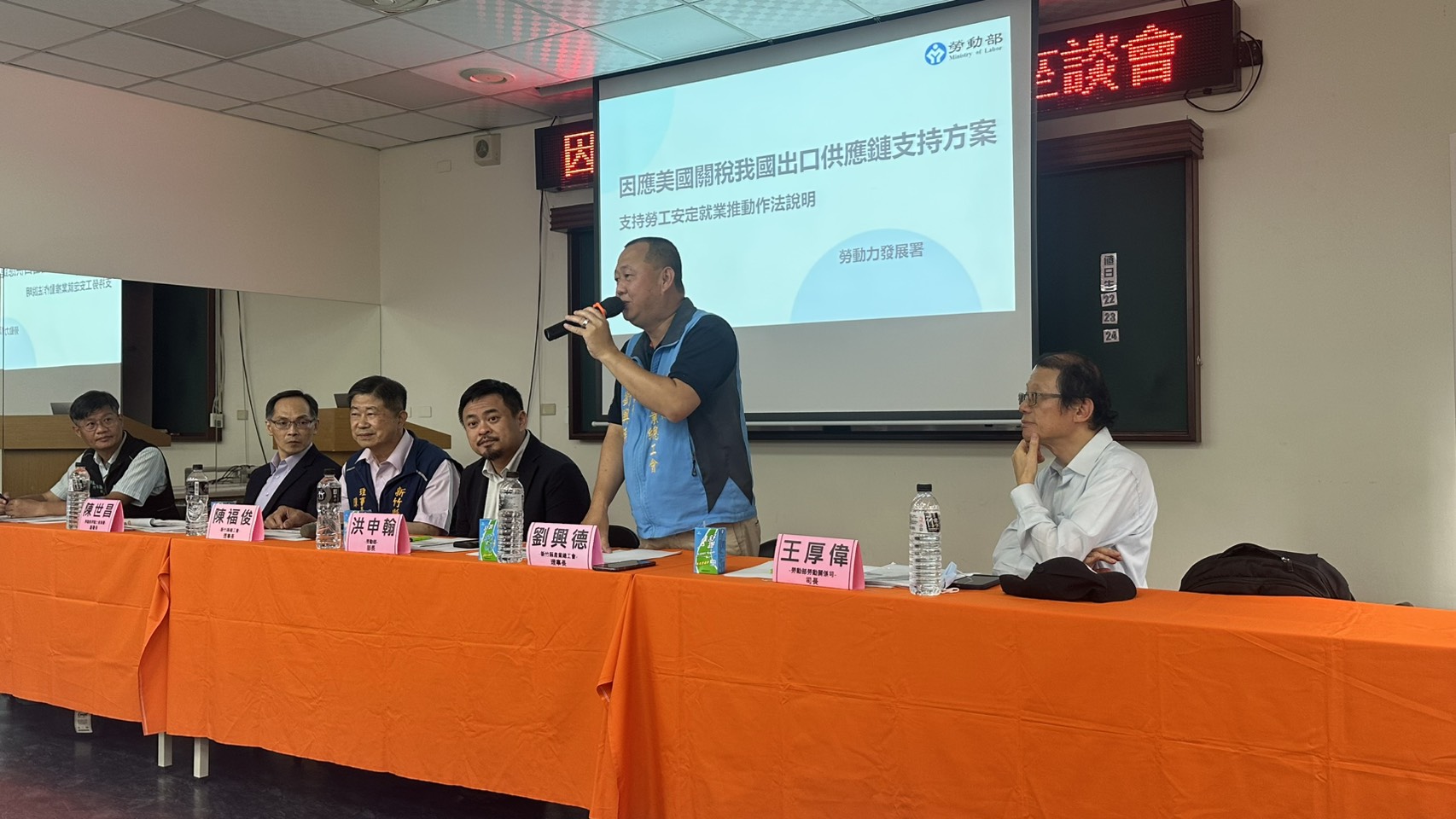 自美國政府發布實施對等關稅措施以來,勞動部除邀集各地方勞動行政首長共同研商外,並已擬具完成各項穩定勞工就業因應措施,建構資訊共享協力網絡,同時亦持續拜會可能受衝擊產業之工會團體,主動瞭解勞工可能面臨的困難與需求。