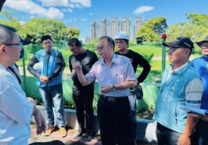 ↑新北市議員陳永福(左二)實地踏查校園場地設施,