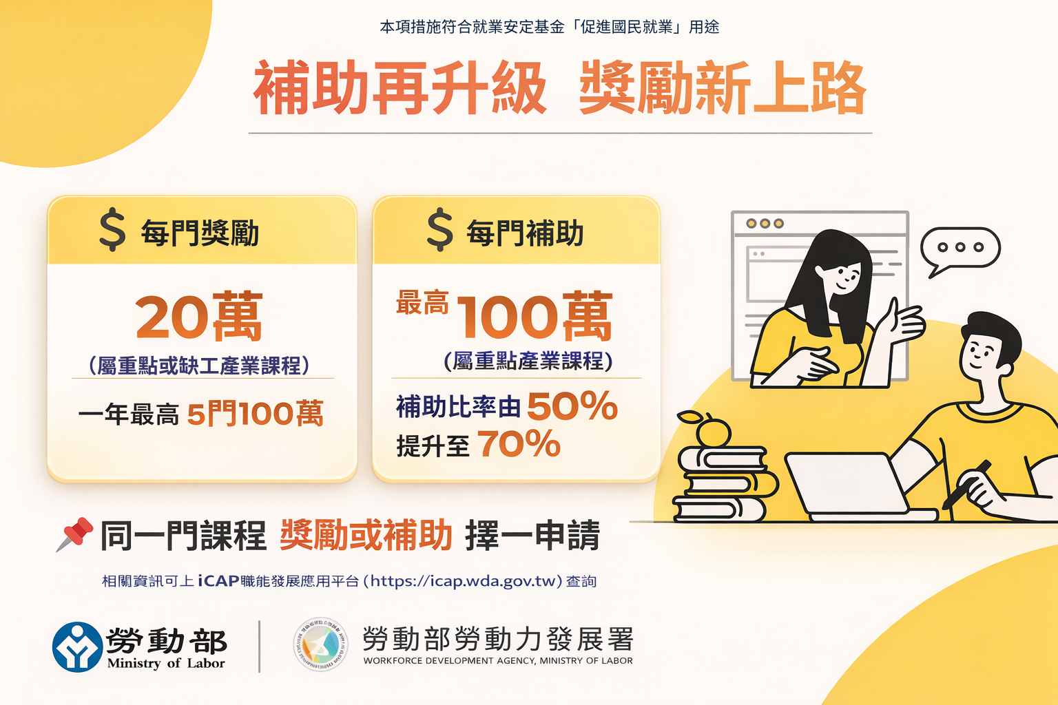 附圖_補助、獎勵雙管齊下!勞動部加碼百萬獎勵、調升補助比率 力挺產業人才培訓升級