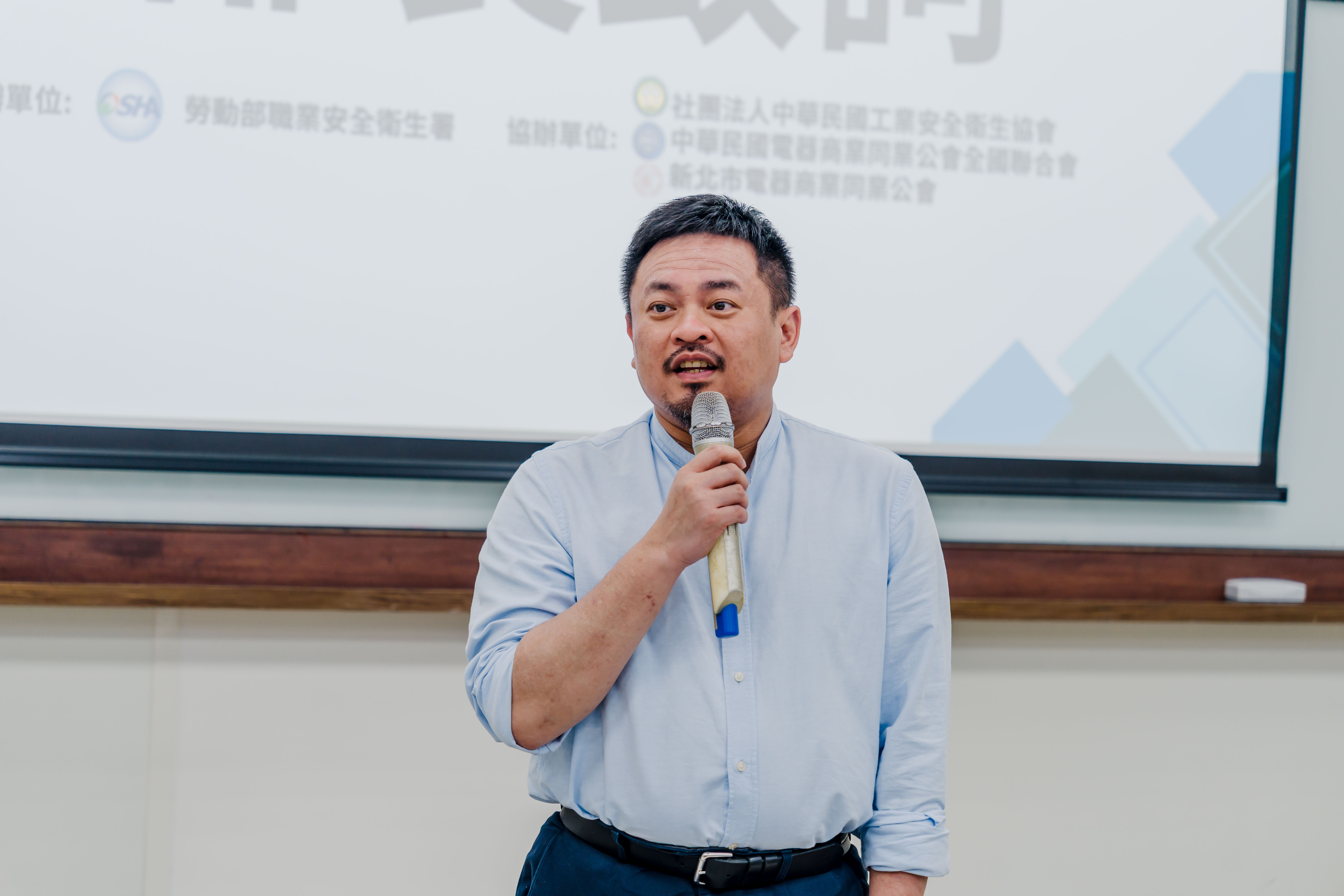 洪部長在活動中,實地觀摩符合「冷氣安裝維修作業安全指引」的完整施工流程,包括穩固的錨拴系統、防墜設施的正確架設,以及感電風險的預防作為。他也特別走進學員之中,與第一線從業人員面對面交流,傾聽大家對於指引的回饋與建議,也期盼透過今天的訓練與示範課程,幫助雇主建立正確觀念,提醒每一位作業夥伴,在每一次安裝、每一次維修時,都能把安全放在第一位,更希望透過與公會的合作,讓這份作業規範真正落實到每一處工地、每一棟建築,讓大家都能「安心工作、平安回家」。