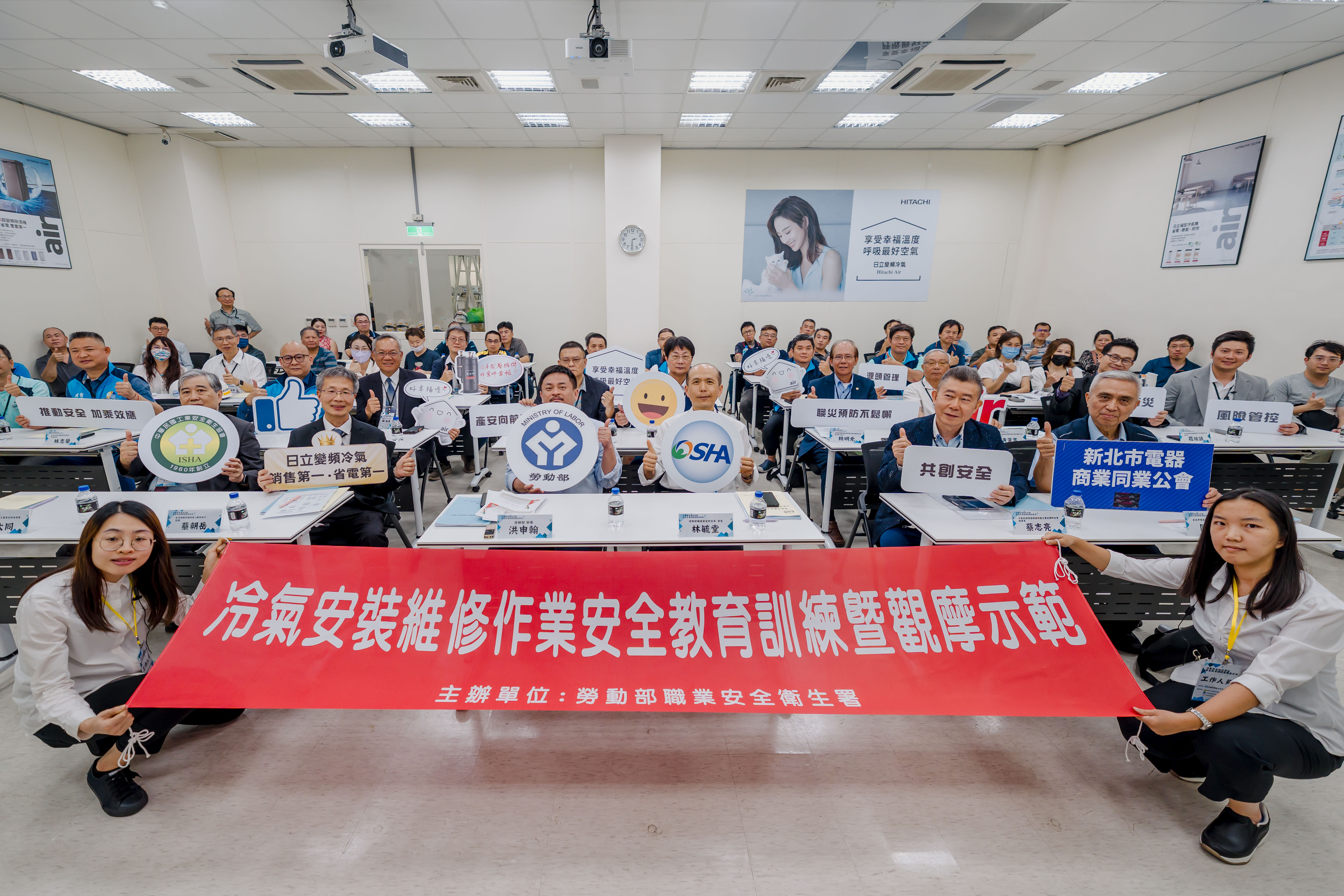 隨著天氣逐漸轉熱,冷氣安裝與維修工作也即將進入一年中最繁忙的時節。勞動部已於114年12月發布《冷氣安裝維修作業安全指引》,整理實際職災案例與現場經驗,提供清楚、可操作的安全施工流程與防護重點,讓業界好用、用得上。為了在旺季來臨前,提前把「安全」這件事準備好,勞動部職業安全衛生署昨(14)日特別攜手中華民國電器商業同業公會全國聯合會、新北市電器商業同業公會,在「日立冷氣研習中心」舉辦「冷氣安裝維修作業安全教育訓練暨觀摩示範」活動,透過實地教學與經驗交流,協助第一線作業人員把安全真正做到位。勞動部洪申翰部長也親自到場,與業者、師傅們一起觀摩施工演練、聽取實務經驗。