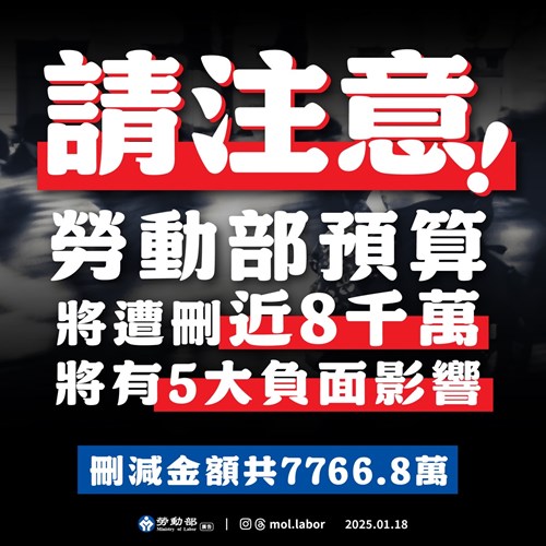 勞動部主管預算若遭刪減近8千萬 將嚴重影響勞動業務推動及一線人力薪資 洪申翰部長懇請各界支持勞動部114年度預算