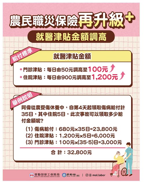 繼續閱讀更新日期:2026-02-10 附圖_農職保就醫津貼金額調高 為協助遭受職業傷病的農民安心休養,農民職業災害保險已經提高就醫津貼的金額,再度為農民職業安全保障加碼。 「農民職業災害保險試辦辦法」於